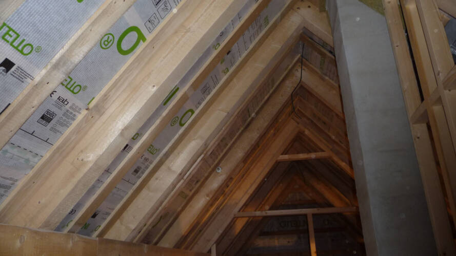 Bei qualitativ minderwertigen Konstruktionen mit synthetischem Plattendämmstoff, der mit der Feuchtigkeit nicht richtig arbeiten kann, können Probleme mit Schimmel und Pilzen entstehen.