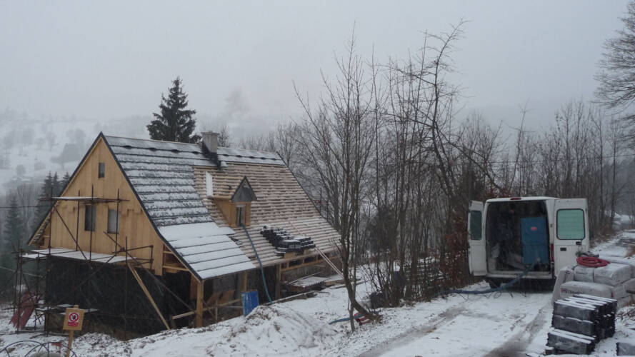 - Das Material direkt an der Baustelle in die Konstruktionen einbauen (Einsparungen aus der Sicht des Materialverbrauchs – Einbau je nach Bedarf und Neigung der Konstruktion), diese Art ist auch wegen der Möglichkeit geeignet kleine Details zu dämmen, die bei der Montage entstanden sind