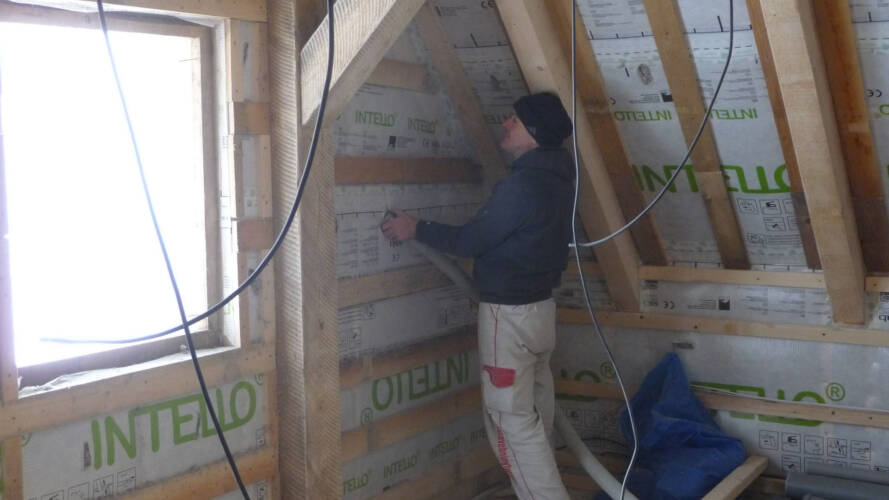 Die Zelluloseeinblasdämmung Climatizer Plus eignet sich ideal für die Wärmedämmung aller Konstruktionen eines Fertighauses. Dank ihrer hohen Rohdichte sicher Climatizer Plus das thermische und akustische Wohlbefinden. Als einer der wenigen Dämmstoffe kann der Zellulosedämmstoff mit dem Feuchtigkeitstransport in der Konstruktion arbeiten und für diffusionsoffene Konstruktionen der Fertighäuser ist er praktisch unentbehrlich.