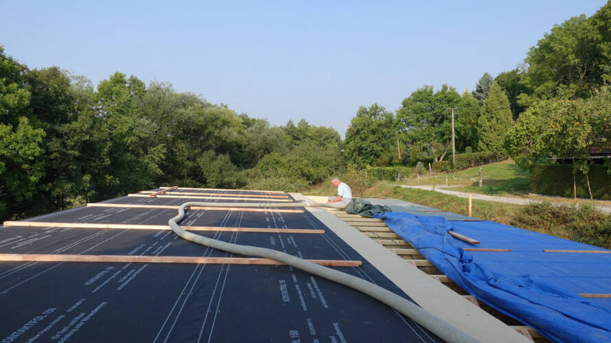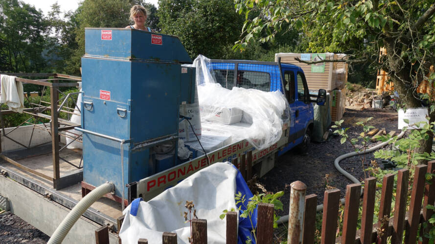 - Das Material direkt an der Baustelle in die Konstruktionen einbauen (Einsparungen aus der Sicht des Materialverbrauchs – Einbau je nach Bedarf und Neigung der Konstruktion), diese Art ist auch wegen der Möglichkeit geeignet kleine Details zu dämmen, die bei der Montage entstanden sind
