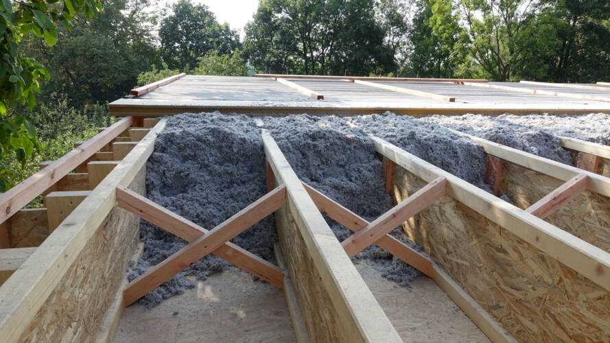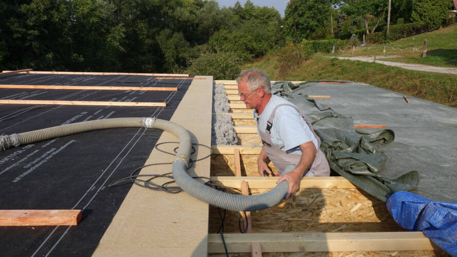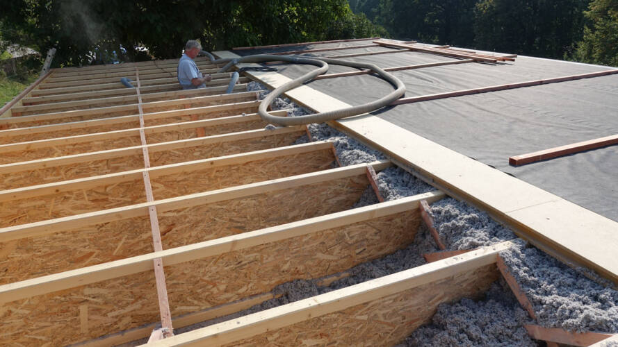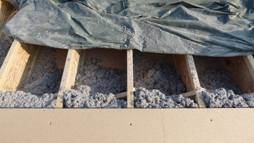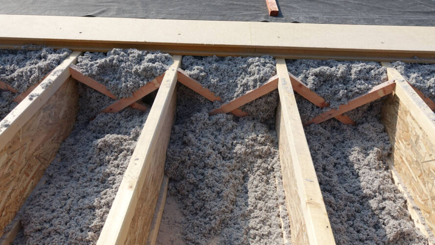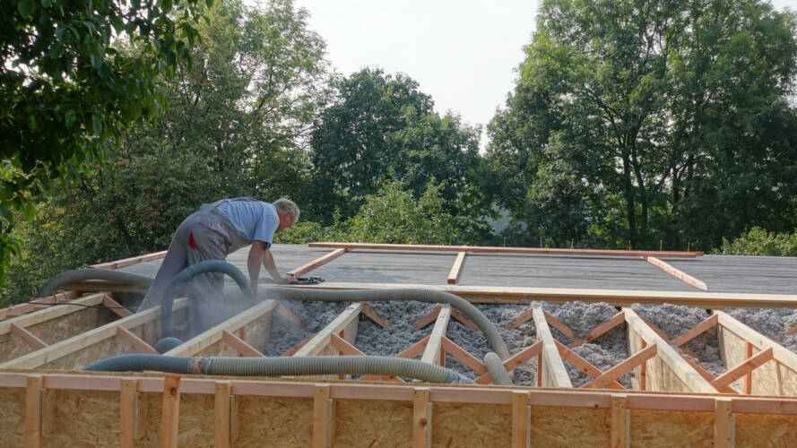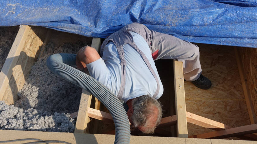 Zu den Vorteilen der Zelluloseeinblasdämmung gehört ihre Abfalllosigkeit und perfekte Ausfüllung des Raums.
