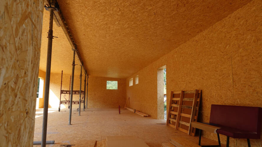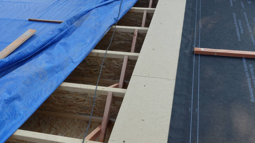 Die Zellulosedämmung Climatizer Plus sichert dank ihrer Rohdichte auch eine ausreichende Schalldämmung, aber an manchen Stellen des Hauses ist es notwendig andere Akustiklösungen zu verwenden. Bei einem Aufbau einer Holzbalkendecke werden mit hervorragenden Ergebnissen auch die ultradünnen Akustikplatten Wolf eingesetzt.
