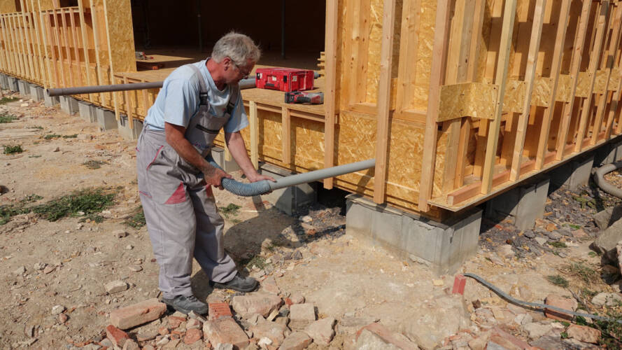 Die Zelluloseeinblasdämmung Climatizer Plus eignet sich ideal für die Wärmedämmung aller Konstruktionen eines Fertighauses. Dank ihrer hohen Rohdichte sicher Climatizer Plus das thermische und akustische Wohlbefinden. Als einer der wenigen Dämmstoffe kann der Zellulosedämmstoff mit dem Feuchtigkeitstransport in der Konstruktion arbeiten und für diffusionsoffene Konstruktionen der Fertighäuser ist er praktisch unentbehrlich.