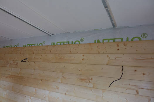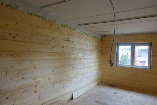 Climatizer Plus Cellulose insulation due to its volume ensures sufficient sound attenuation. However, in certain places within the building it is necessary to use an alternative acoustic solution. For example, ultra-thin Wolf acoustic boards are used that provides excellent results in the composition of the beamed ceiling.