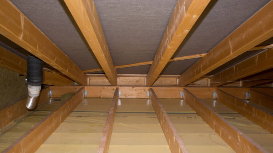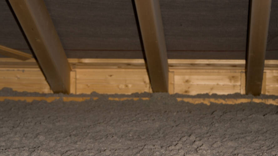Celulózová izolace Climatizer Plus zajišťuje díky své objemové hmotnosti i dostatečný útlum zvuku, ale v určitých místech domu je nutné použít jiné řešení akustiky. Například ve skladbě trámového stropu se s výbornými výsledky používá i ultratenké akustické desky Wolf.