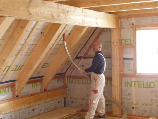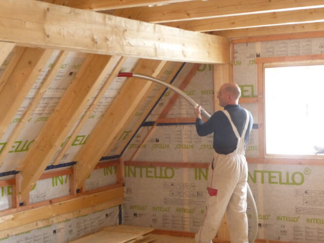 Foukaná celulózová izolace Climatizer Plus je ideální pro zateplení všech konstrukcí dřevostaveb. Díky své vysoké objemové hmotnosti zajistí Climatizer Plus dřevostavbám tepelnou a akustickou pohodu. Jako jedna z mála izolací dokáže celulózová izolace pracovat s transportem vlhkosti v konstrukci a pro difúzné otevřené skladby konstrukcí dřevostaveb je prakticky nezbytností.